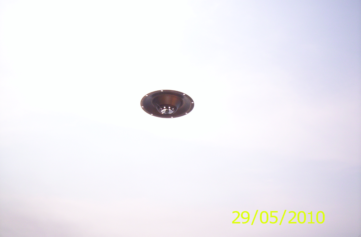 En otra de las imágenes logramos observar el clonado digital que se realizó por simple copia usando una selección rectangular en la parte central de la toma de donde se logró ver un hilo amarrado que aparece en la parte inferior del mismo. En la fotografía rotulada como OVNI AAA 003 al realizarle un análisis de contraste tonal y al hacer un acercamiento se aprecia una línea al centro además de que se reveló la naturaleza del metal del objeto, siendo éste claramente de cobre resaltando algunos tonos azulaceos, lo que corresponde a un metal que fue expuesto al fuego como si fuera un quemador y los agujeros corresponden a algún tipo de montura. En tanto, a la foto OVNI 001 y 004 le sobresale el detalle de un hilo volando y el amarre en 3 puntos a fin de sostener en el aire al supuesto platillo volador, posiblemente se uso un hilo de color blanco para que pasara desapercibido pero se les olvido cortar un tramo como lo podemos ver.