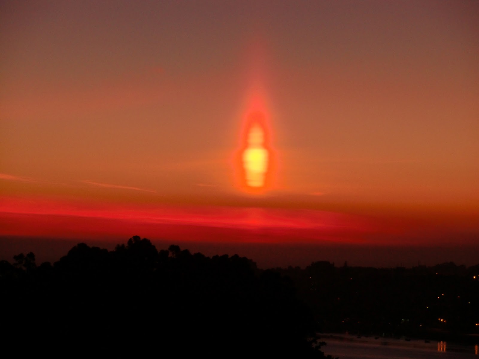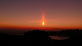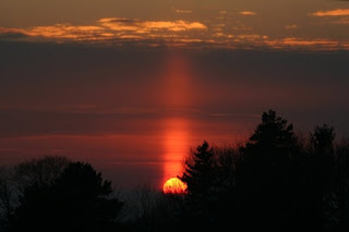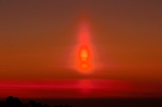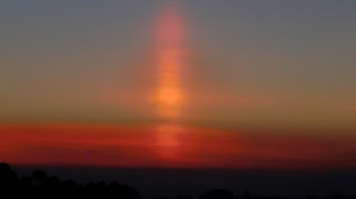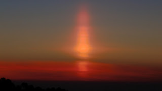 Ocorre com maior frequência com o por do Sol, criando uma massa de ar fria que por sua vez cria este efeito de um pilar de luz.