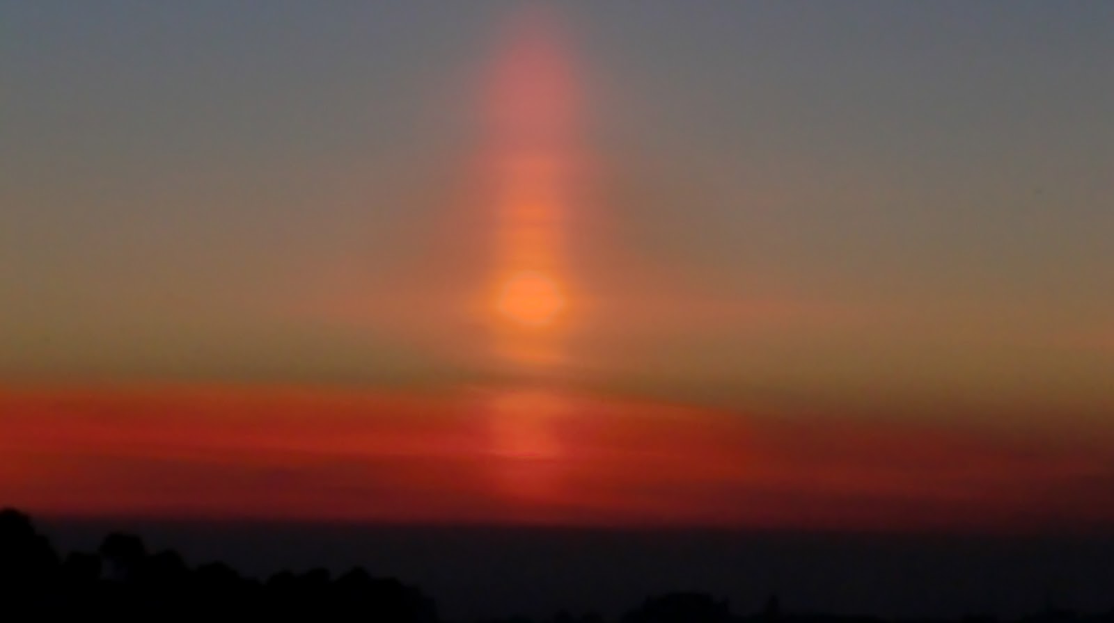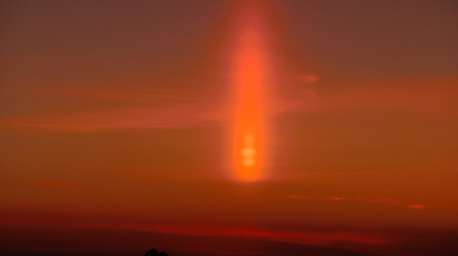 Este é o fenómeno Pilar Solar, ou emissão de luz sobre pequenas partículas de cristais que existem na atmosfera “gelo” até mesmo com alguma humidade.
