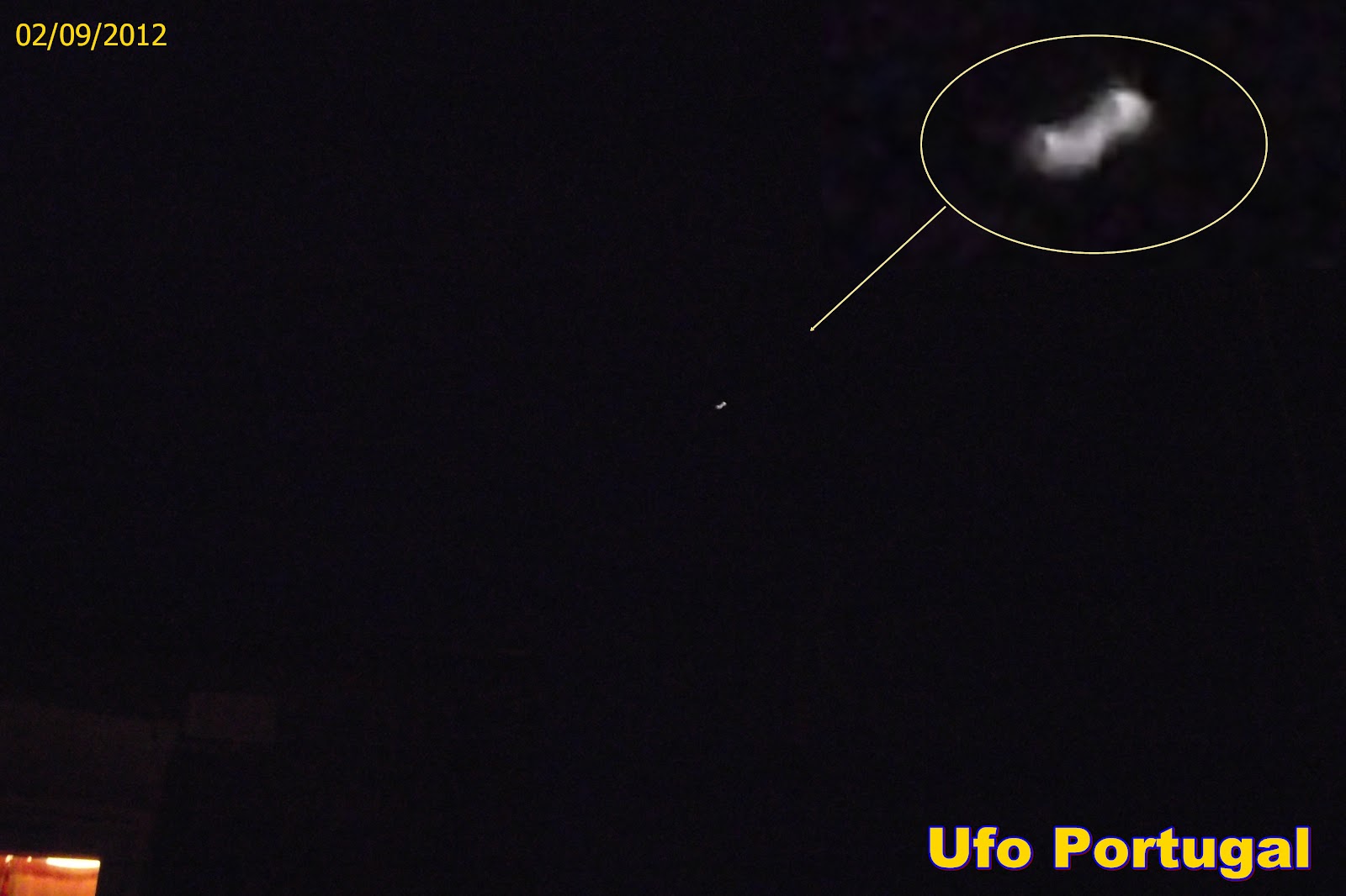 Passados breves momentos o objeto inicia voo libertando chamas de aproximadamente três metros na sua parte inferior através de uns tubos duplos que ambos entenderam ser o escape de gases propulsão do motor do objeto.