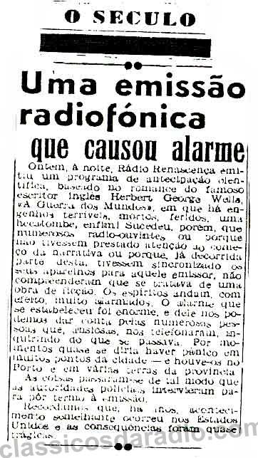ao assunto lamentando que o 'responsável não tivesse sido severamente punido'. Esse articulista (?) lamentou que a R.R. tivesse feito a transmissão, porque o programa era patrocinado por uma empresa de máquinas de escrever !!! E foi bem mais longe pedindo ao Governo "uma censura mais apertada para a Rádio".