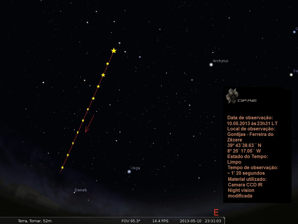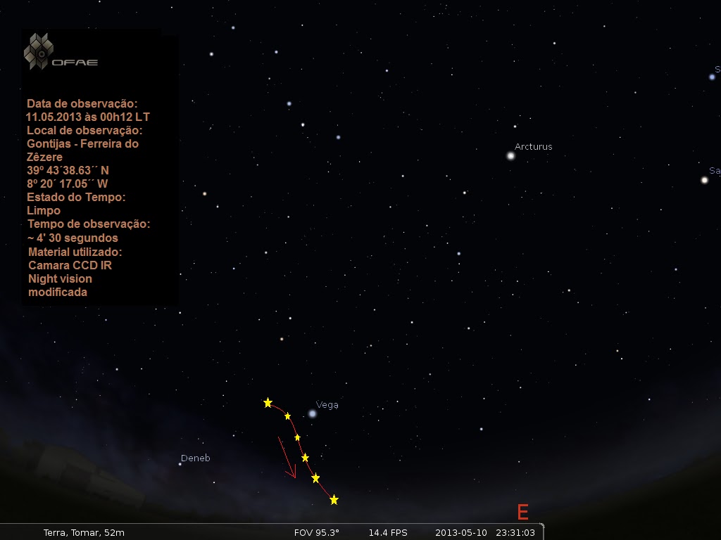 Após este trabalho de rastreio, não existe nenhum satélite, que tenha como orbita, as trajectórias destes objectos que foram vistos a partir das 21h53 LT.