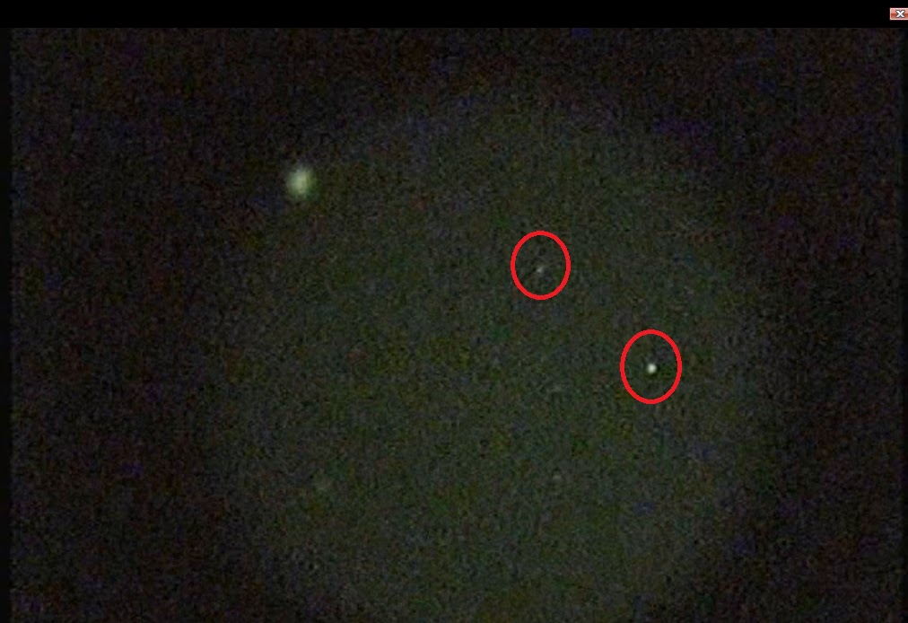 A Norte, foi observado 2 objectos esféricos em formação de cor alaranjada, que despertaram de imediato a atenção, estes objectos não deram tempo de poder agarrar na camara de filmar, que se encontrava a alcance da mão. A velocidade observada foi algo ainda nunca visto, uma velocidade mesmo extraordinária. Desde o inicio ao fim da observação, apenas durou perto dos 4 segundos, de horizonte a horizonte. Os objectos no final desapareceram em direcção ao espaço para Sul-Este. Não houve qualquer tipo de ruído durante a passagem dos objectos.