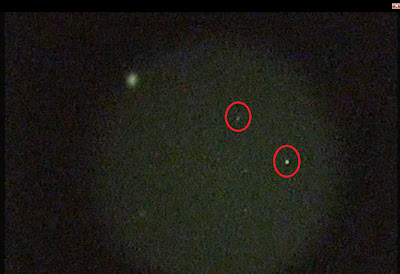 Embora a realização de um UFO céu relógio em Shropshire UK, consegui capturar dois objetos não identificados no filme através do meu dispositivo de visão noturna.