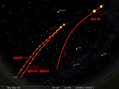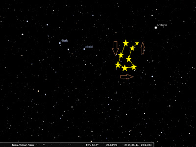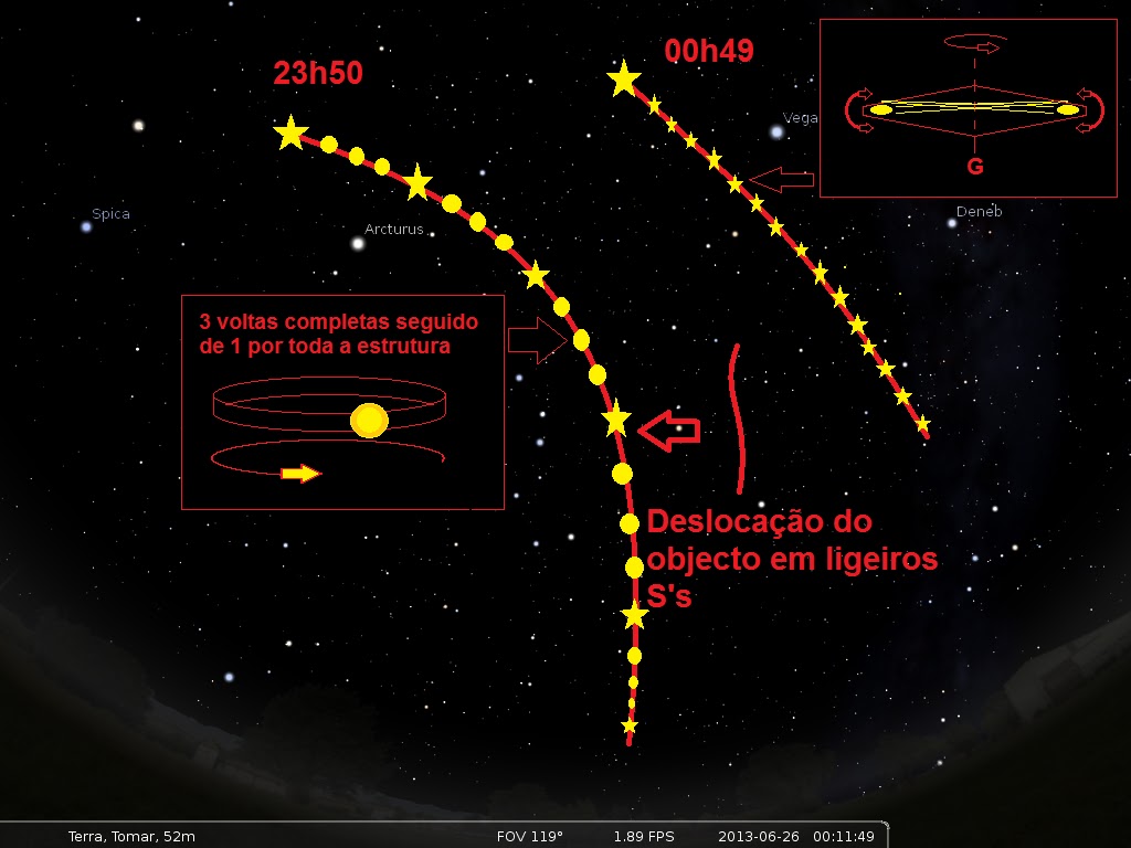 Estava a calibrar o meu telescópio para ver a estrela Arcturus, quando me apercebi de um ponto luminoso, perto da mesma, que voava a grande velocidade e com luz intermitente.