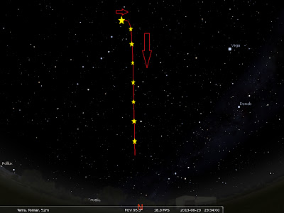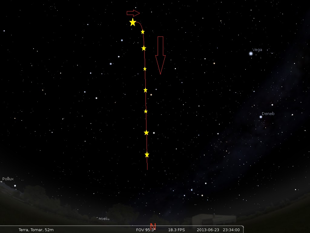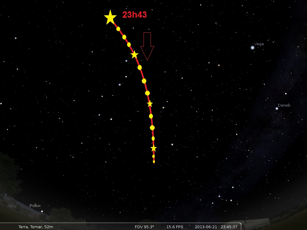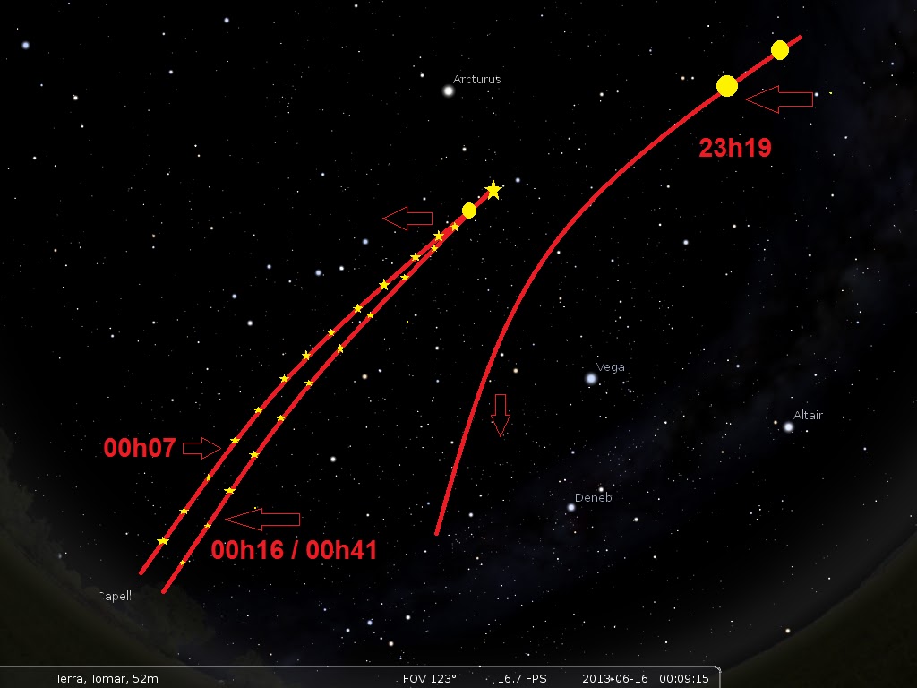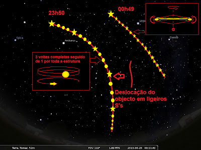 Perante data hora, localização mencionada os movimento não corresponde aos Satélites visíveis nessa noite.
