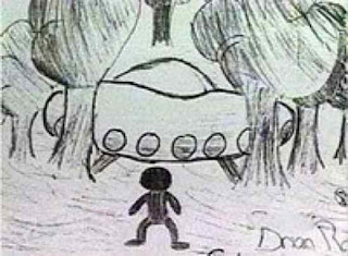 Em um episódio ainda mais bizarro, a criança mais velha relatou a Hind que o pequeno homem advertiu as crianças de que a beleza e os recursos naturais do planeta estavam sendo devastados e poluídos num caminho sem volto. “Esses pensamentos vieram do homem, dos olhos do homem”, disse a criança de 12 anos, assustada. O desenho de um dos alunos pode ser visto acima.
