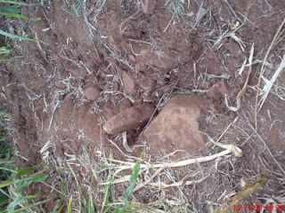 Como yo pude constatar, no fue sólo en un local de la plantación que aconteció eso, pero, caminando por la plantación se descubrió un otro epicentro con las mismas caracteristicas, descartando cualquier posibilidad que haya sido un rayo el causador de todo eso.