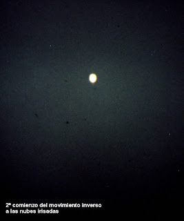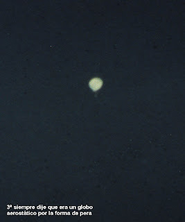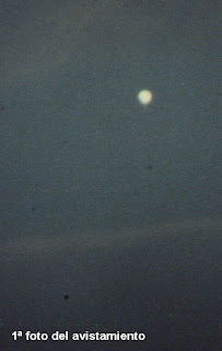 Às 21 horas aproximadamente, desse dia, saí ao terraço de meu domicílio para abrir as janelas e ao olhar para a direita, ao céu, observe um objeto muito brilhante de tom branco azulado e metalizado, encontrava-se a simples vista estático e sem movimentos aparentes, minha primeira impressão foi a de estar vendo a lua, mas ao olhar um pouco mais à direita pude ver a esta na fase de quarto crescente quase à mesma altura. A iluminación que desprendia o objeto dava a sensação a simples vista que seu volume era a metade do da lua em seu estado presente e tão brilhante como esta, na rua se tinham formado vários corros de vizinhos pendentes do evento e comentando sobre o mesmo.