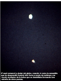 Com as referências e cálculos estabelecidos em meus mediciones, afirmaram-me experientes que este Ou.V.N.I., teria umas dimensões descomunales para poder ter sido visto em uns pontos tão distantes, o volume deste aparelho poderia ser do tamanho de um estádio de futebol, hoje não há nenhum balão aerostático que tenha a décima parte deste volume. Também não existe até agora em Espanha nenhuma base aérea que seja capaz de desenvolver um aparelho destas características, além de ter umas instalações adequadas para sua manutenção.